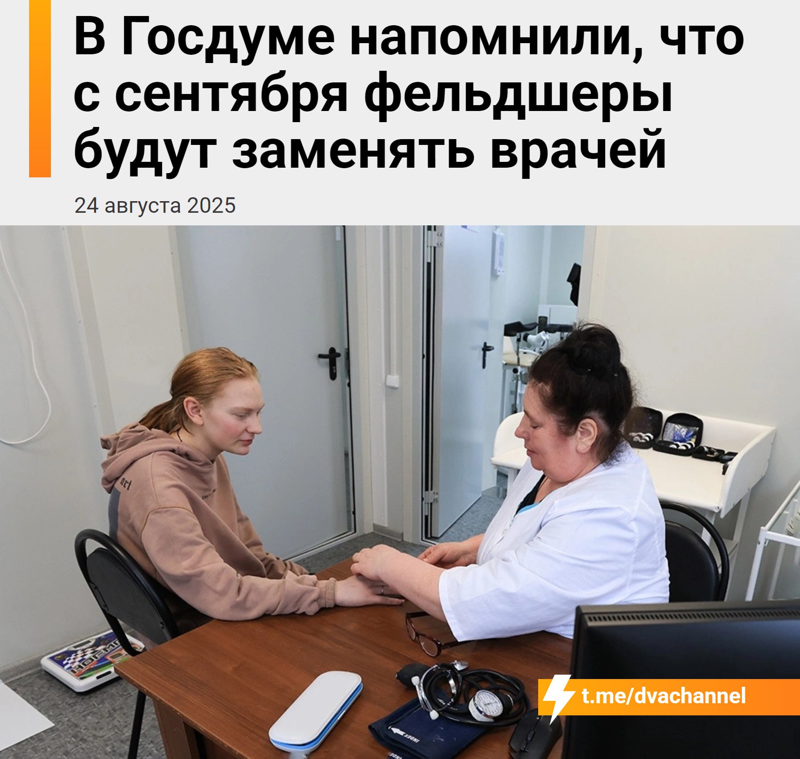 ‼️Фельдшеры без высшего образования начнут лечить россиян с 1 сентября