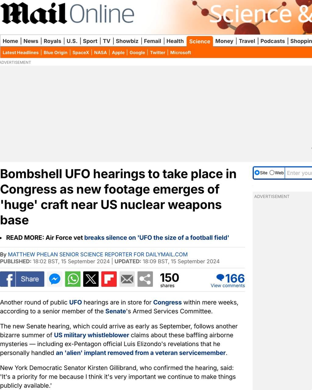 ✖️ Сенатор-демократ от Нью-Йорка Кирстен Джиллибранд в беседе с Daily Mail выразила в надежду, что предстоящие слушания в Сенате по НЛО восстановят общественное доверие к Управлению по охоте на НЛО.