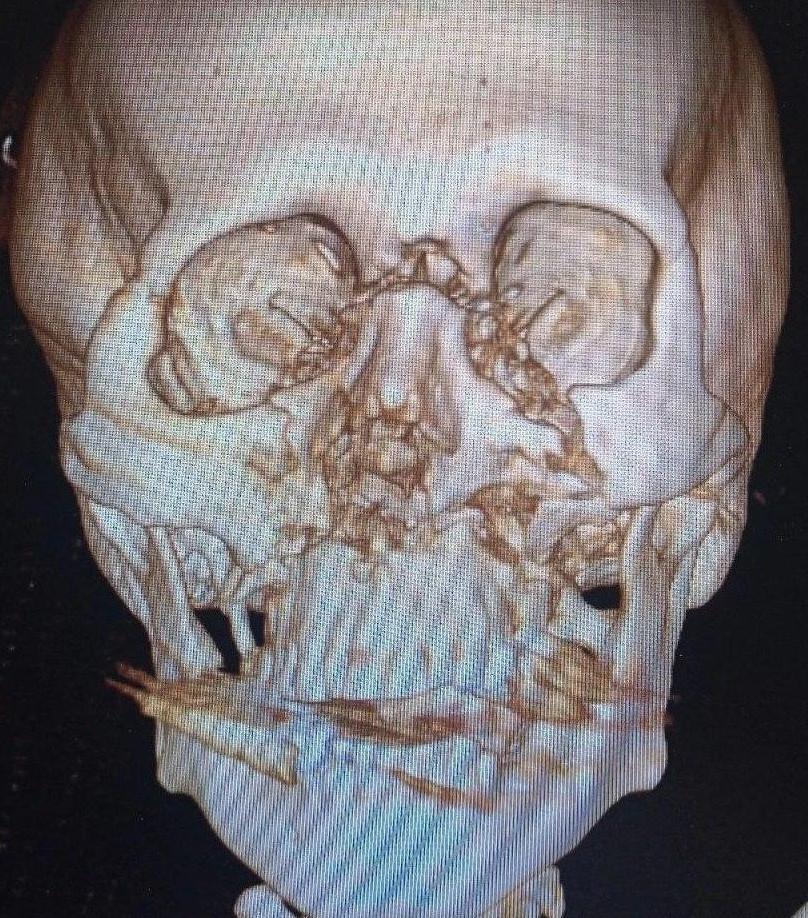 Перед врачами стояла сложная задача. Лицо мужчины пришлось восстанавливать по кусочкам, которых осталось очень мало — фактически врачи создали ему на лице титановую маску.