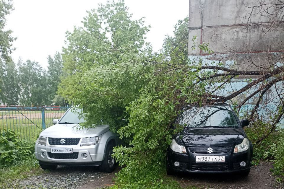 В Новосибирске дерево упало на две машины. Инцидент произошел утром 7 июня на улице Петухова.