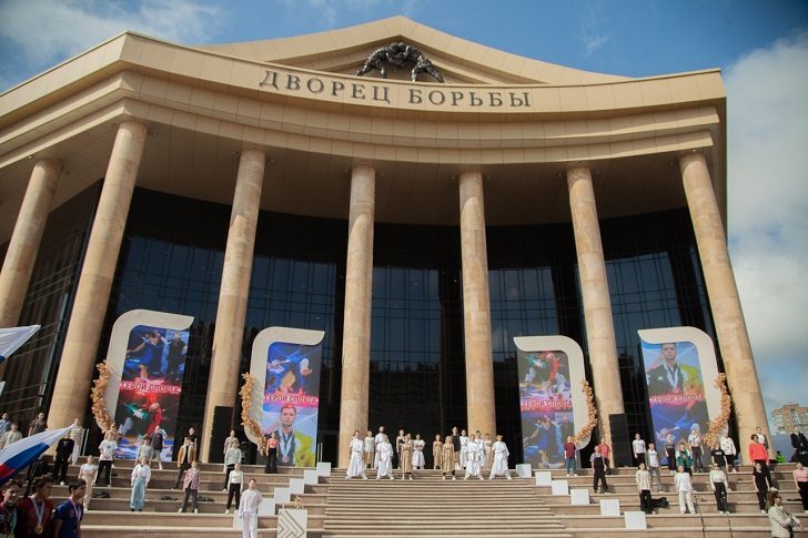 Дворец борьбы – многофункциональная площадка в городе. В нем расположены 4 зала борьбы, бассейный комплекс, спортивно-концертный зал и даже гостиница. В его строительство вложено около 6,5 млрд рублей.