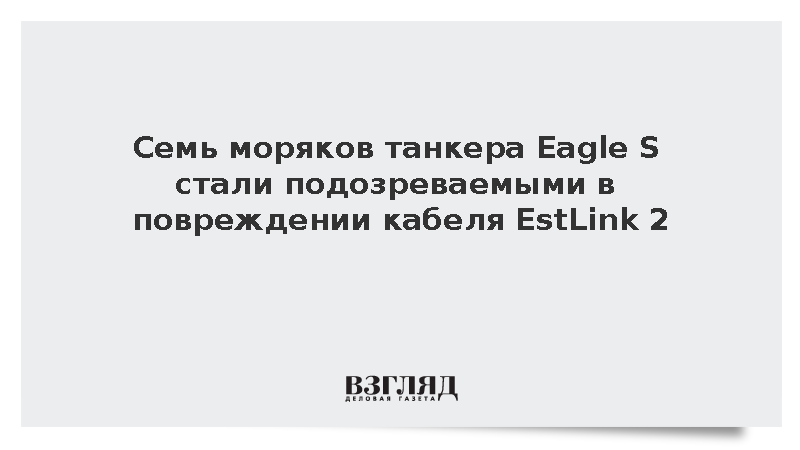 Семь членов экипажа танкера Eagle S, задержанного финскими властями, получили запрет на выезд из Финляндии, передает France Press со ссылкой на местную полицию. Все они стали фигурантами расследования по делу о повреждении подводного электрокабеля EstLink 2 между Финляндией и Эстонией.