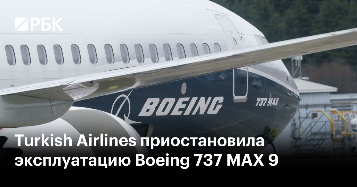 Турецкая авиакомпания Turkish Airlines приостановила эксплуатацию пяти самолетов Boeing 737 MAX 9 после инцидента с лайнером Alaska Airlines в США, сообщил старший вице-президент перевозчика Яхья Устюн в соцсети X.