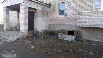 Рушится входная группа в первом подъезде. Балкон разобрали на третьем этаже, так как он начал крушиться, и до сих пор не восстановили. Нет ступенек в четвёртом подъезде.