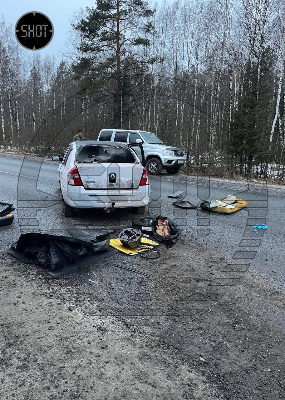 ⚡️Публикуем первое фото расстрелянного "Рено Симбол", который не остановился по требованию силовиков в районе деревни Хацунь Карачинского района Брянской области