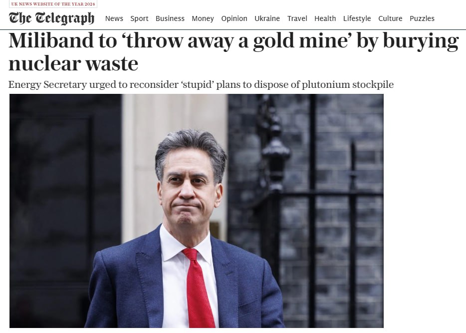 Главу Минэнерго страны Эда Милибэнда критикуют за утрату «ценного национального ресурса», но оказалось, что комплекс «Селлафилд», где намеревались переработать отходы атомной энергетики для вторичного использования, не может гарантировать достаточный уровень защиты окружающей среды.