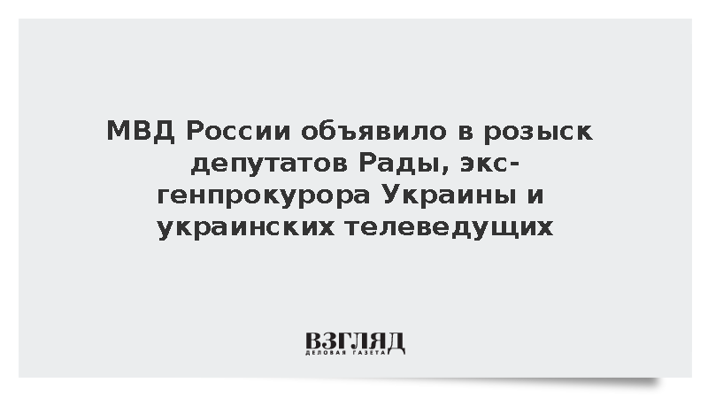 МВД России объявило в розыск ряд украинских политиков и журналистов, в том числе депутатов Верховной рады Алексея Гончаренко и Владимира Парасюка, бывшего генпрокурора Украины Виталия Ярему, а также телеведущих Янину Соколову и Наталью Мосейчук.