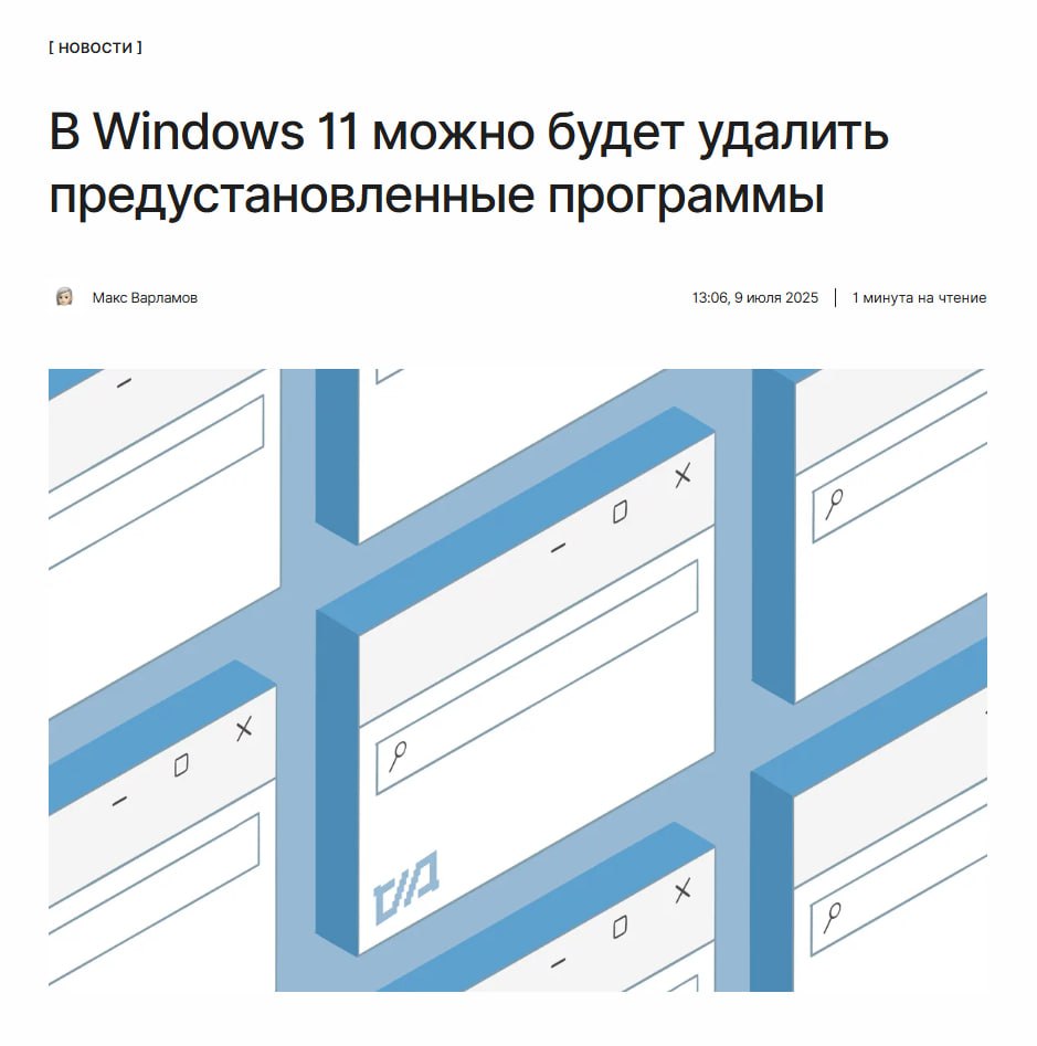 Π Windows 11 25H2 ΠΏΠΎΡΠ²ΠΈΡΡΡ Π²ΡΡΡΠΎΠ΅Π½Π½Π°Ρ ΡΡΠΈΠ»ΠΈΡΠ° Π΄Π»Ρ ΡΠ΄Π°Π»Π΅Π½ΠΈΡ ΠΏΡΠ΅Π΄ΡΡΡΠ°Π½ΠΎΠ²Π»Π΅Π½Π½ΡΡ ΠΏΡΠΎΠ³ΡΠ°ΠΌΠΌ. Π£Π΄Π°Π»ΠΈΡΡ ΠΌΠΎΠΆΠ½ΠΎ Π±ΡΠ΄Π΅Ρ Π΄Π°ΠΆΠ΅ Β«ΠΠ°ΠΌΠ΅ΡΡΒ» ΠΈ Windows Media Player.