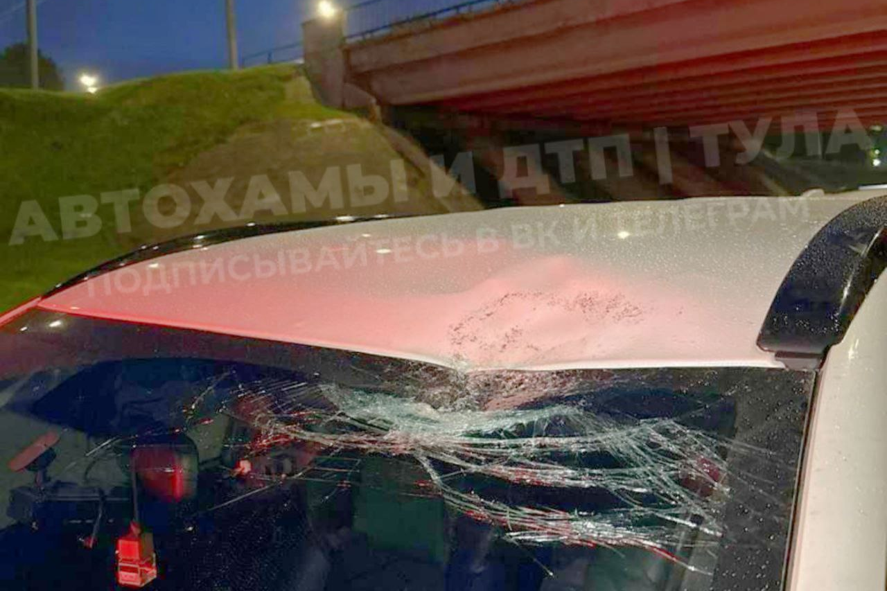 На автомобиль, движущийся в сторону Пролетарского округа, с моста упал камень, попавший в лобовое стекло.