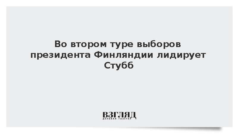 Во втором туре президентских выборов в Финляндии лидирует кандидат от Национальной коалиционной партии Александр Стубб, сообщает Минюст Финляндии.