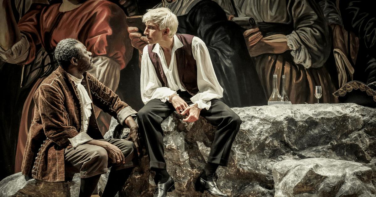 Nous sommes dans un palais qui n'en est pas vraiment un. Sur une table de pierre, des pommes, fruits du péché, sont disposées ici et là. Le voilà, le fameux séducteur, tricorne sur la tête et masque de carnaval. Don Juan, interprété par Baptiste Chabauty, a la chevelure prématurément blanche. Il égrène le chapelet de ses conquêtes : Rose, Line, Angélique, Armande… La liste est longue, mille et tre. Pas assez : il lui en faut une dernière. Le séducteur se prépare pour un ultime bal, son ultime nuit, car le sursis que lui avait octroyé le diable, il y a dix ans, s'est écoulé.