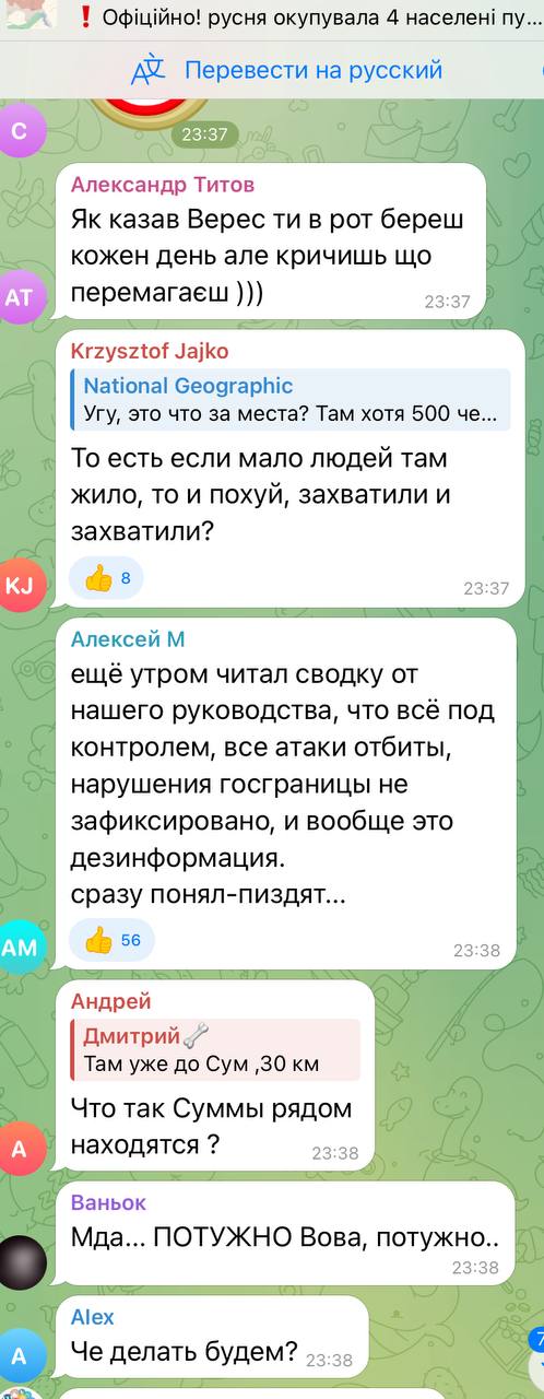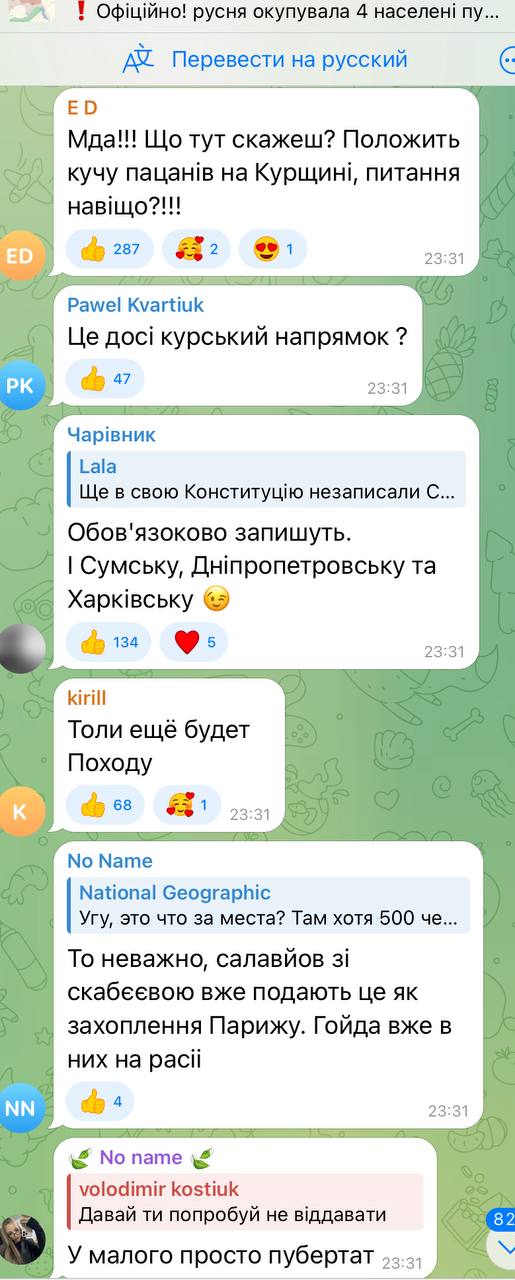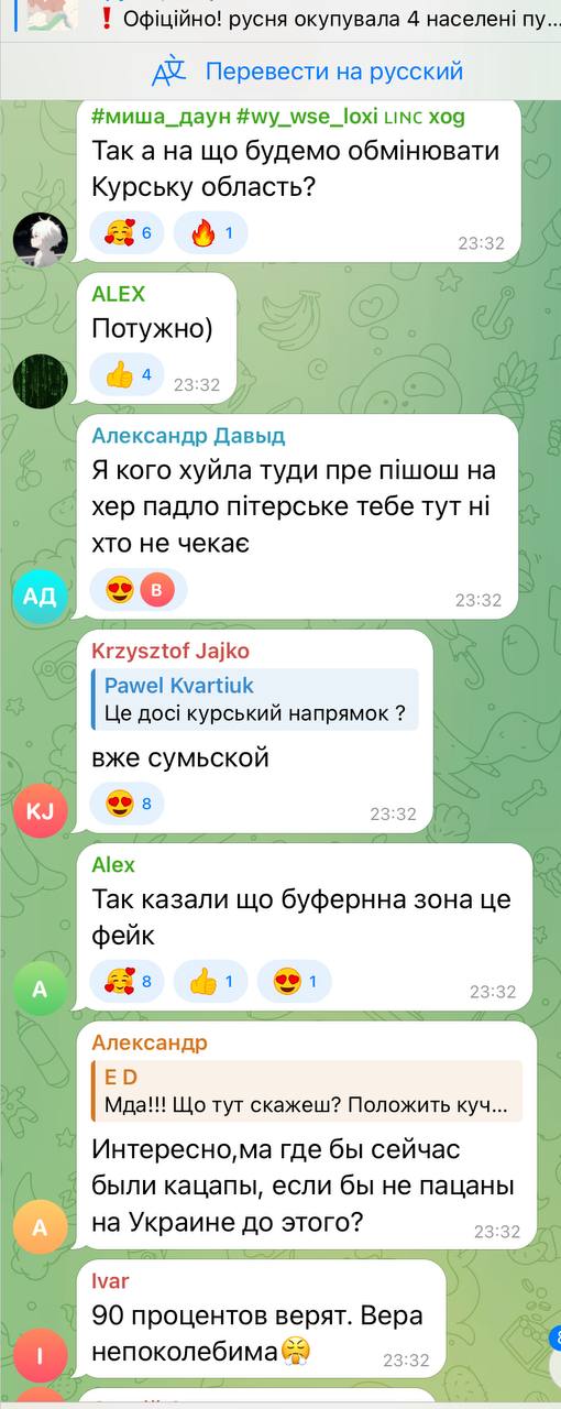 Хохлы их в комментах спрашивают, когда и на что Курскую область менять будем?