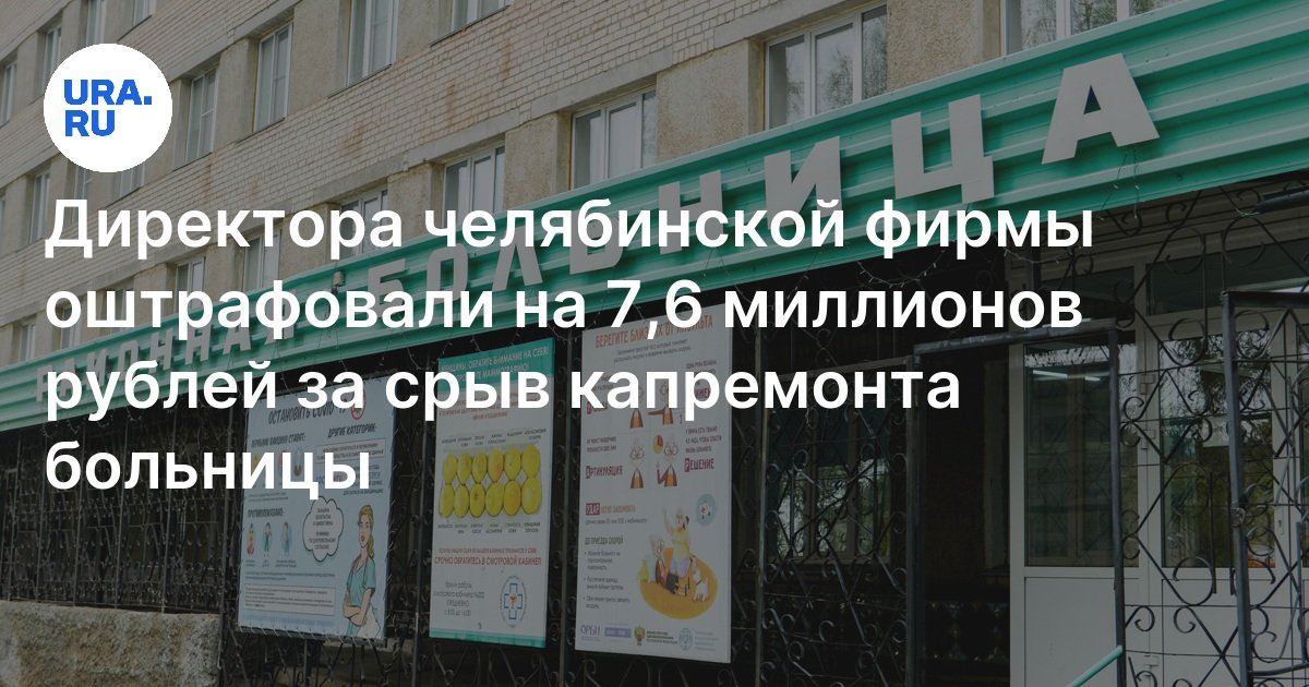 В Верхнеуральске Челябинской области директора фирмы оштрафовали на 6,7 миллионов рублей за невыполненные работы и нарушение сроков ремонта районной больницы в рамках нацпроекта. Об этом сообщили в пресс-службе прокуратуры по региону.