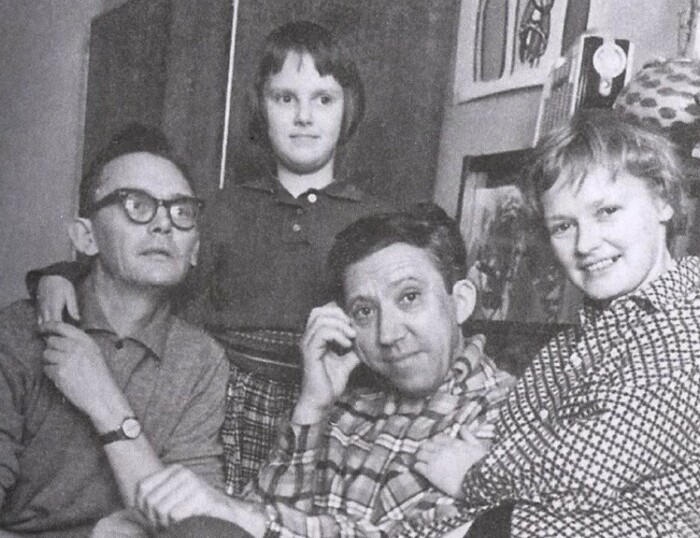 Леонид Гайдай и Нина Гребешкова с дочерью и Юрием Никулиным.