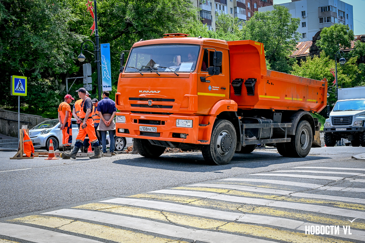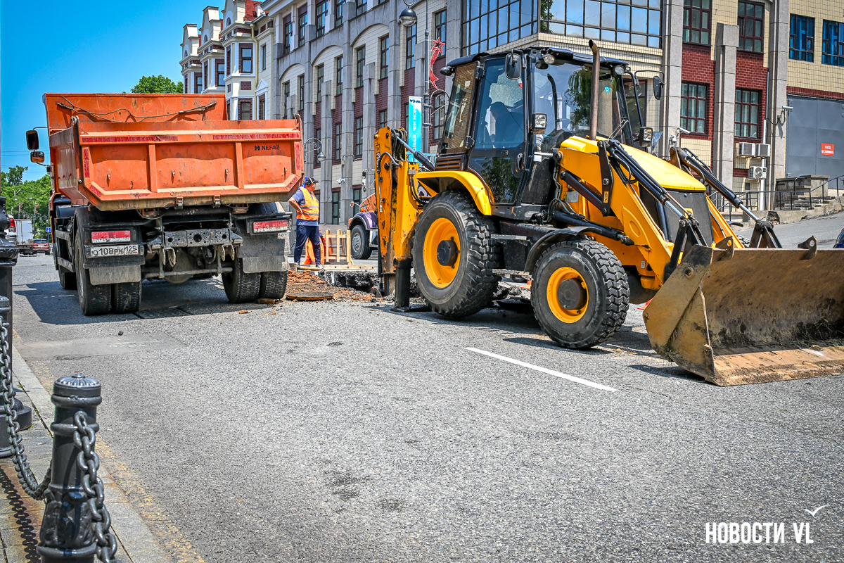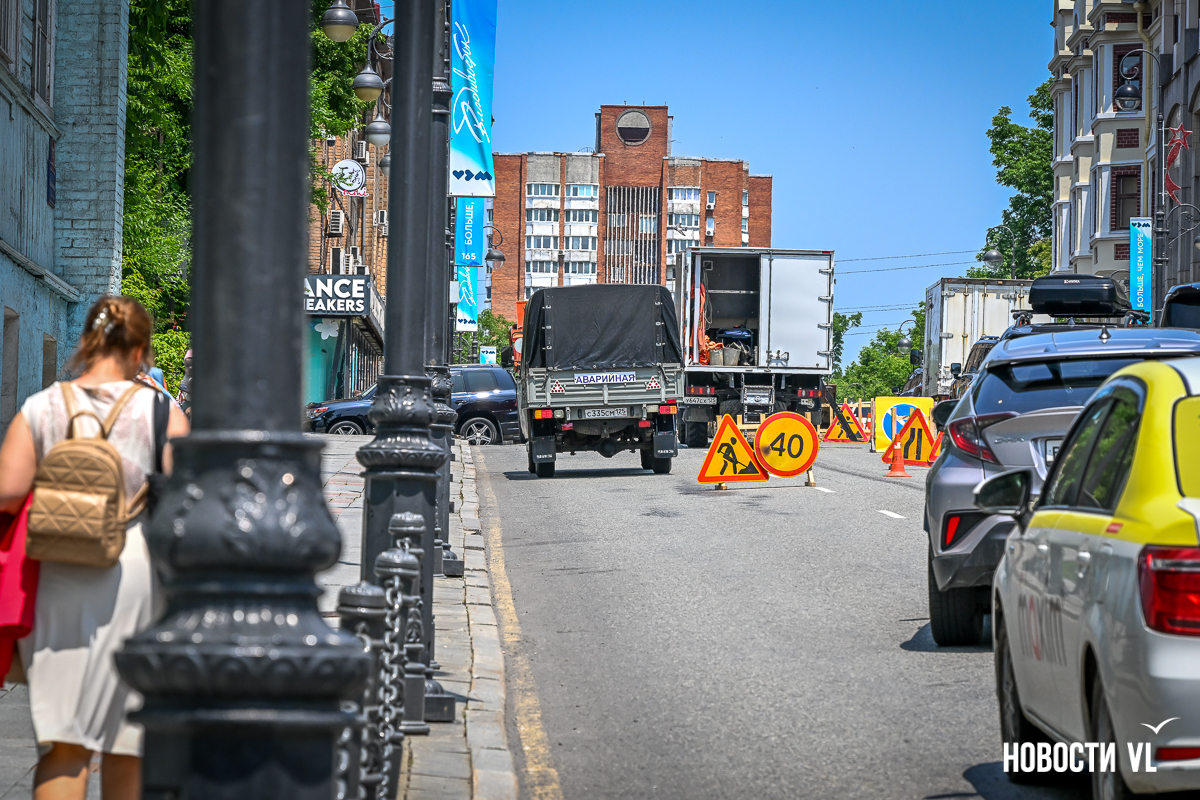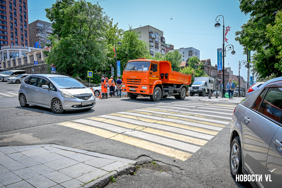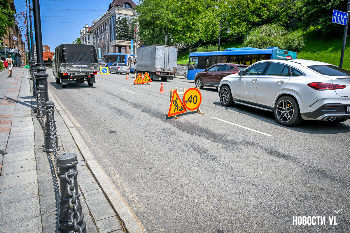 Примводоканал раскопал участок автомобильной дороги на перекрёстке Океанского проспекта и Прапорщика Комарова для ремонта трубы. Перекрытыми оказались две полосы в сторону Покровского парка, в течение дня здесь движение осложнено. На данный момент основные работы уже завершились, а пробка всё ещё есть – привести дорогу в первоначальный вид обещают на следующей неделе.