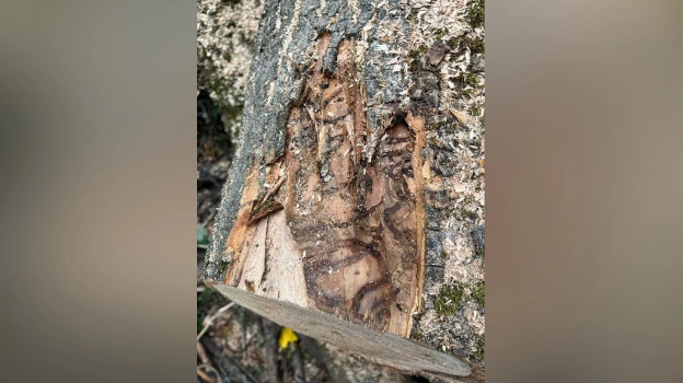 Заместитель директора института лесной генетики Юрий Мизин пояснил, что ясеневая изумрудная узкотелая златка – новый для региона, но опасный и быстро распространяющийся вредитель. При осмотре пней под корой было обнаружено множество следов жизнедеятельности жуков, что однозначно подтвердило необходимость вырубки.