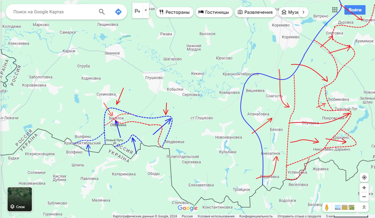 Также сейчас идут бои по освобождению н.п. Дуровка, Ольговка и Журавли (наши в каждом из них уже есть и закрепились). Надеюсь сегодня их тоже освободят.