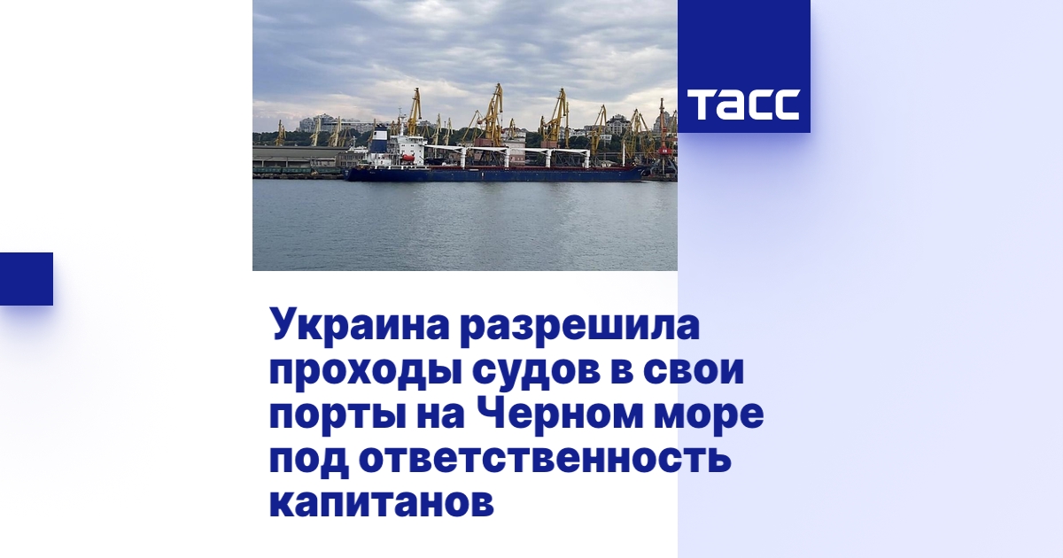 МОСКВА, 10 августа. /ТАСС/. Украина объявила о временных коридорах в Черном море для торговых судов, идущих из или в порты Черноморск, Одесса и Южный. В Киеве предупреждают, что на маршруте сохраняется военная угроза и минная опасность, поэтому к проходу допускают суда, чьи владельцы и капитаны "официально подтверждают готовность к плаванию в данных условиях".
