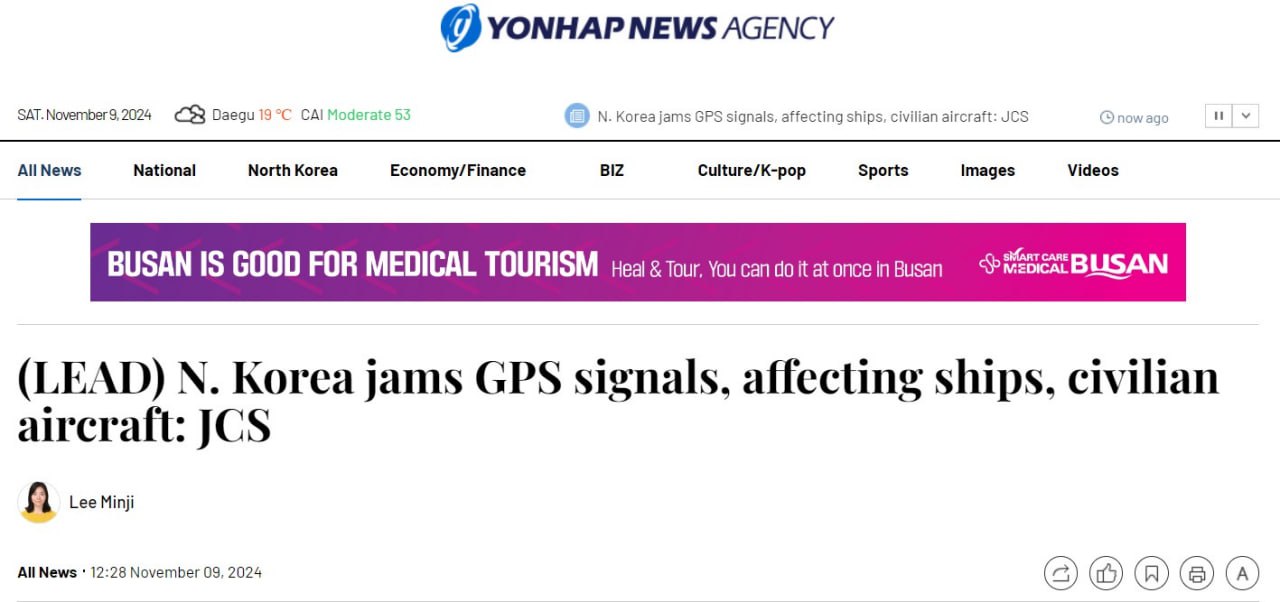 КНДР глушит сигнал GPS в зоне Корейского полуострова