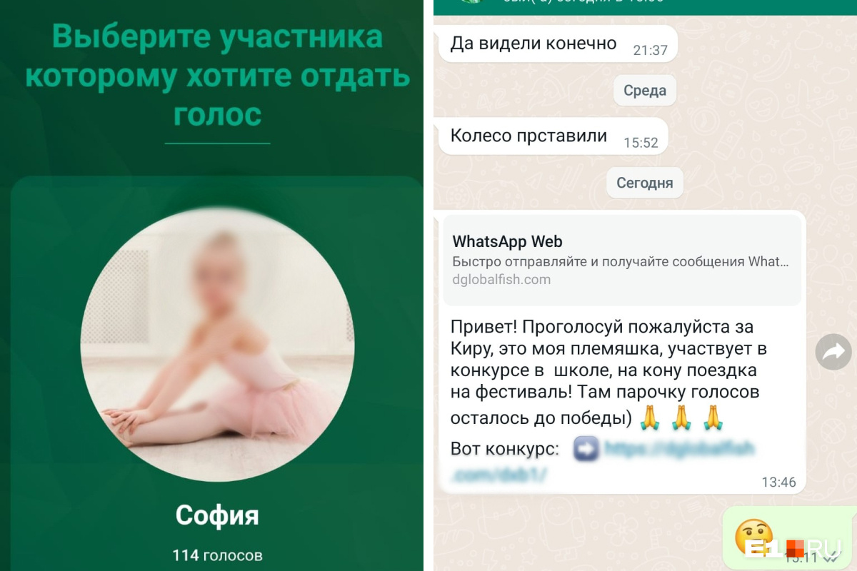 Екатеринбуржцы получают в WhatsApp рассылки с просьбой проголосовать то за «милую племяшку», то за «маленькую балерину». Их рассылают мошенники.