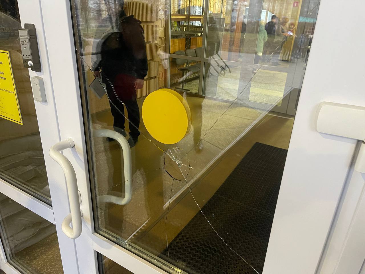 Юноша вбежал в здание, разбил одно окно в коридоре и, несмотря на преследование, беспрепятственно выскочил на улицу, попутно разбив молотком стекло входной двери. Убегая, он также бросил при входе сумку, в которой находилось два ножа и бутылка с жидкостью для розжига. Все происшествие заняло не более 2 минут.