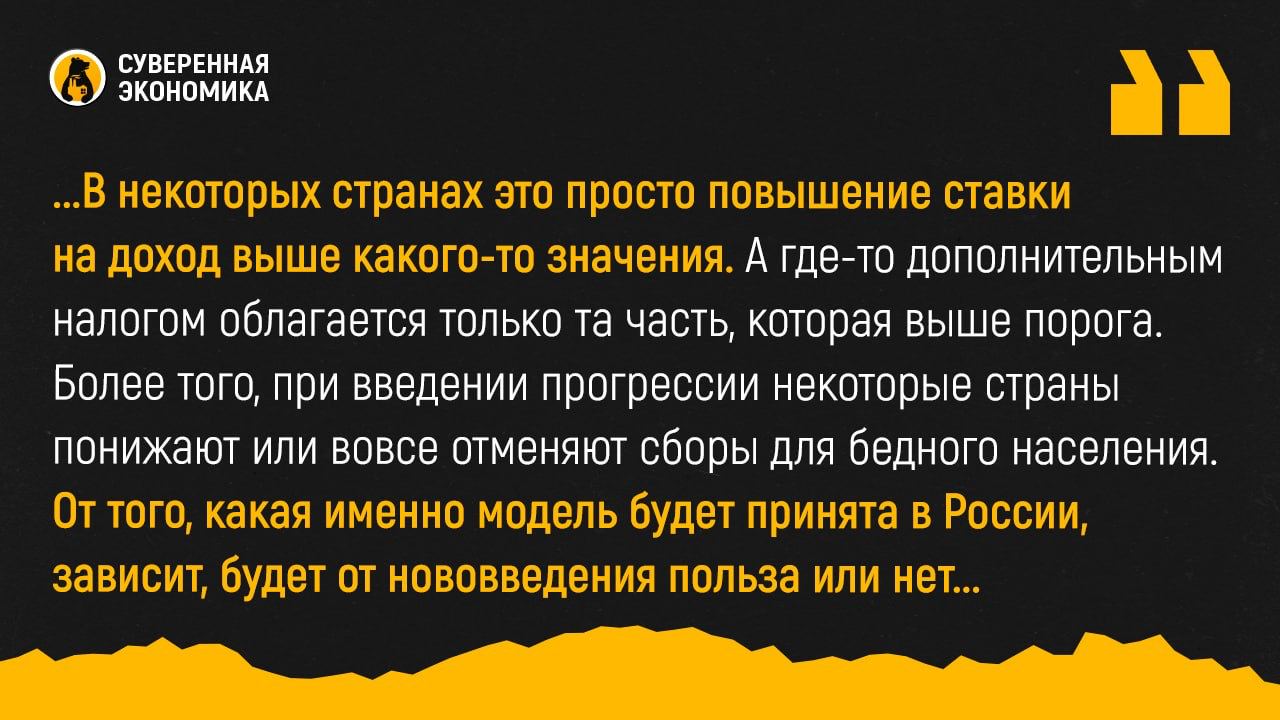 Однако в мире существует множество вариантов прогрессивного налога. В некоторых странах это просто повышение ставки на доход выше какого-то значения. А где-то дополнительным налогом облагается только та часть, которая выше порога. Более того, при введении прогрессии некоторые страны понижают или вовсе отменяют сборы для бедного населения. От того, какая именно модель будет принята в России, зависит, будет от нововведения польза или нет.