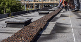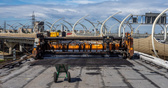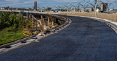 Самый готовый участок — это примыкание к ЗСД в районе Благодатной. Там будет 4 съезда, и один из них — с севера в сторону Митрофаньевского шоссе и Витебского проспекта — в целом уже почти достроен, там укладывают дренаж (похожий на козинак щебень, залитый в эпоксидку), несколько слоев асфальта, ставят ограждения. Как рассказал начальник участка Александр Щагин, самой сложной с технической точки зрения частью была, предсказуемо, эстакада непосредственно для подключения к Западному скоростному диаметру: конструкции собирали на земле в стесненных условиях, после чего поднимали мощными кранами высокой грузоподъемности на нужную высоту.