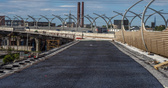 Дальше на восток, где-то в районе Цветочной улицы, трасса снова входит в один шестиполосный уровень. На этом широком поле уже готовы пролетные строения, на них укладывают фиброплиту, промазывают специальной мастикой, потом арматура, бетон и, собственно дорожная одежда. При подходе к Витебскому развязка условно разделится на два примыкания (хотя съездов будет больше): северный у Воздухоплавательной улицы и южный у станции «Воздухоплавательный парк». Сейчас здесь смонтирован и уже открыт путепровод в створе Витебского проспекта, идет реконструкция Артиллерийского путепровода, который разобрали перед этим.