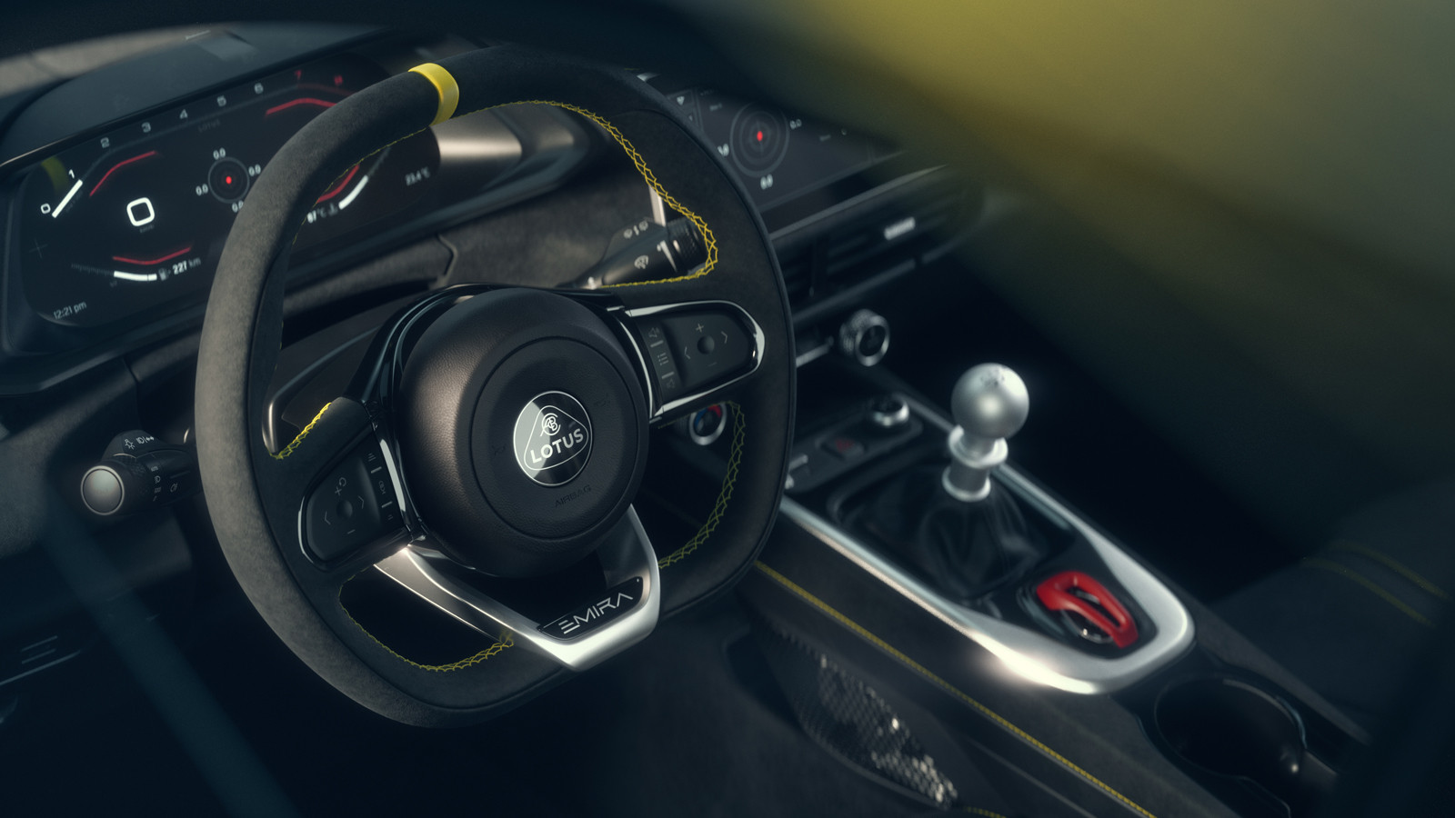 Эта версия получила пересмотренную подвеску и другие настройки ездовых режимов Tour и Sport. Купе 2026 модельного года снабдили оригинальными 20-дюймовыми коваными колёсными дисками и яркими тормозными суппортами. Для салона предусмотрены спортивные педали и обивка из алькантары. За такое исполнение Lotus Emira в Германии просят не менее 117 500 евро (около 10,6 млн рублей).