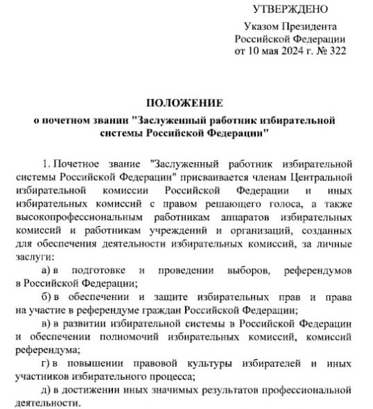 Владимир Путин установил новое почётное звание – «Заслуженный работник избирательной системы РФ»