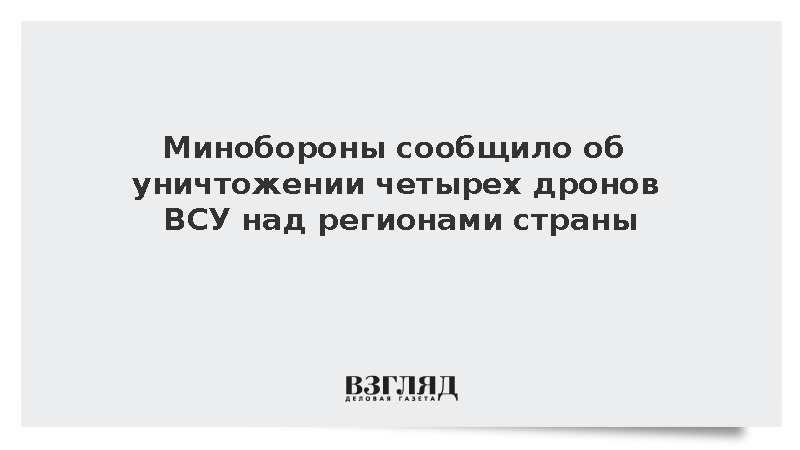 Российские средства ПВО уничтожили четыре украинских БПЛА над регионами России за 30 минут вечером субботу, сообщили в Telegram-канале Минобороны.