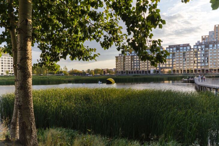 – Наш герой – объемный. И поглощает он не абстрактные точки, а вполне конкретный мусор. Пакман дрейфует на понтоне, словно движется в компьютерной игре и гонится за стаканом, упаковкой и огромным окурком, – рассказывают в компании-застройщике.