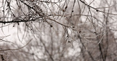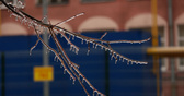 Жительница Выборга поделилась с «Фонтанкой» фотографиями ледяного дождя. Веточки деревьев оказались покрыты коркой льда.