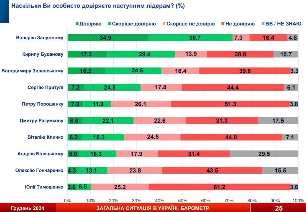 - ΠΠ°Π»ΡΠΆΠ½ΠΎΠΌΡ Π΄ΠΎΠ²Π΅ΡΡΡΡ 71,6% ΡΠΊΡΠ°ΠΈΠ½ΡΠ΅Π², Π° ΠΠ΅Π»Π΅Π½ΡΠΊΠΎΠΌΡ 40,8%;
