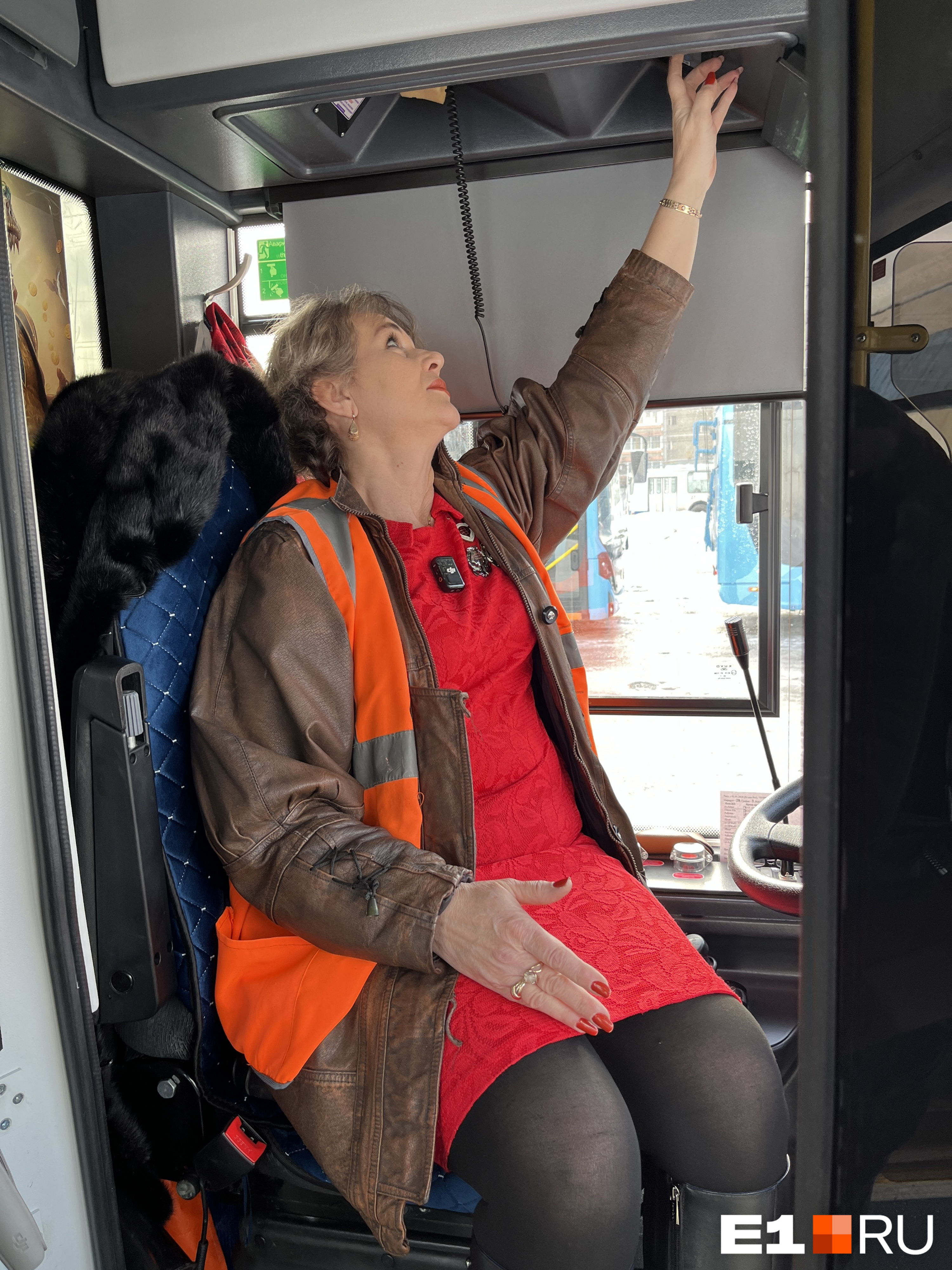 Чтобы собраться на работу, Ирина Николаевна встает в четыре утра, ведь перед выходом в рейс ей нужно успеть нарядиться и накраситься. Раньше она ездила на первом маршруте: с Химмаша на вокзал через центр. Теперь возит пассажиров в Академический. Кабина дамы-водителя тоже эффектно оформлена: в ней висят иконы и календарь с драконом, есть место для шляпы и сумки. В ней, кстати, всегда лежит косметичка.