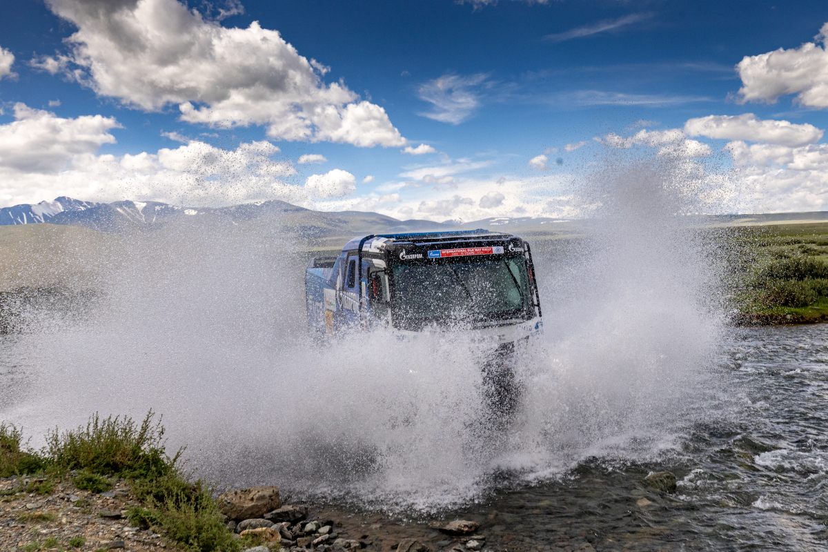 При выезде на старт одной из главных задач стала настройка машин: финальный день на территории России проходил на высоте до 2500 метров – дополнительная и серьезная нагрузка на двигатели спортивной техники. На одном из участков маршрута караван ралли ушел на затяжной подъем – многотонная техника медленно, на второй передаче, тянулась вверх к перевалу. А дальше – скоростные дорожки.