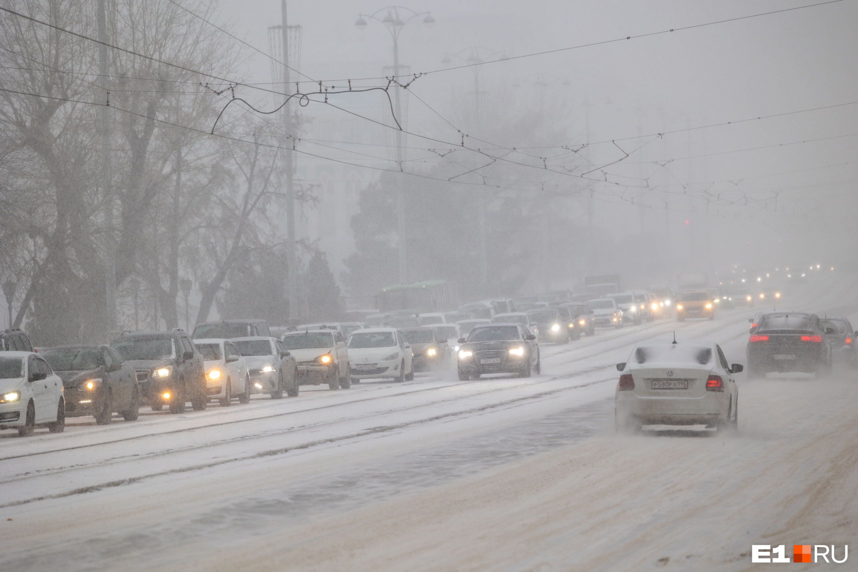 Екатеринбург встал в 10-балльные пробки после мощного снегопада
