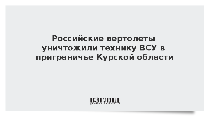 Российские вертолеты Ка-52М нанесли высокоточный удар по позициям Вооруженных сил Украины в приграничном районе Курской области, уничтожив живую силу и бронетехнику противника, сообщили в Министерстве обороны РФ.