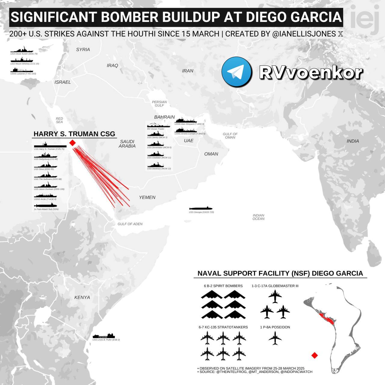 ❗️США и Израиль готовятся через несколько недель нанести удар по Ирану, утверждает Daily Mail со ссылкой на высокопоставленных израильских политических, военных и дипломатических источников. «Пришло время подвести черту», — сказал собеседник издания в правительстве Израиля. Второй источник назвал нынешнюю ситуацию, при которой США возглавляет именно Трамп, «оптимальным моментом для решения проблемы Ирана», поскольку «лучшего шанса не будет». Кроме того сообщается, что США разместили еще три стелс-бомбардировщика B2 «Spirit» на своей базе на на острове Диего-Гарсия, доведя общую численность бомбардировочной авиации до семи.