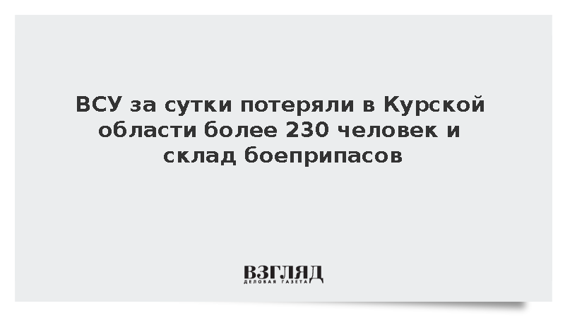 За минувшие сутки потери ВСУ составили более 230 военнослужащих, уничтожены два артиллерийских орудия, два миномета, четыре пункта управления БПЛА и склад с боеприпасами.