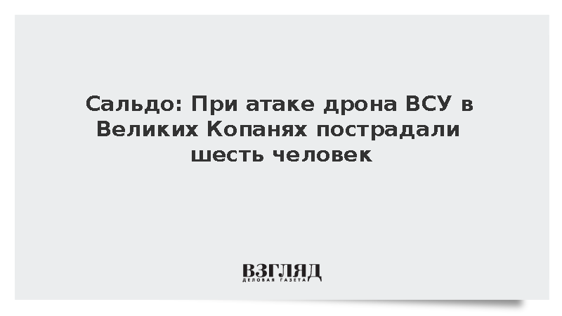 Украинский беспилотник атаковал населенный пункт Великие Копани в Херсонской области, пострадали мирные граждане, сообщил глава региона Владимир Сальдо.