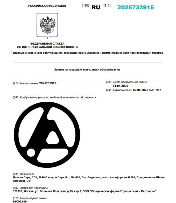 В базе Роспатента появилась заявка на регистрацию товарного знака Linkin Park. Обращает на себя внимание то, что внесли её туда 1 апреля.