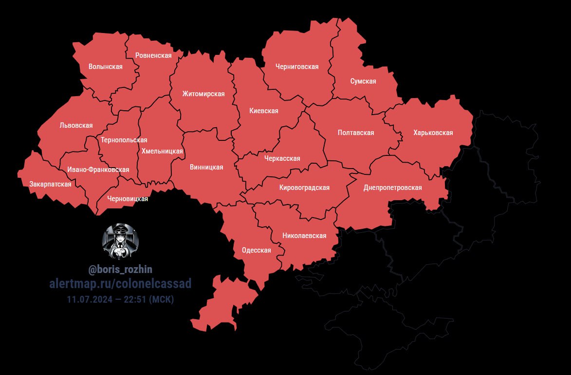 Воздушная тревога объявлена на всей территории Украины