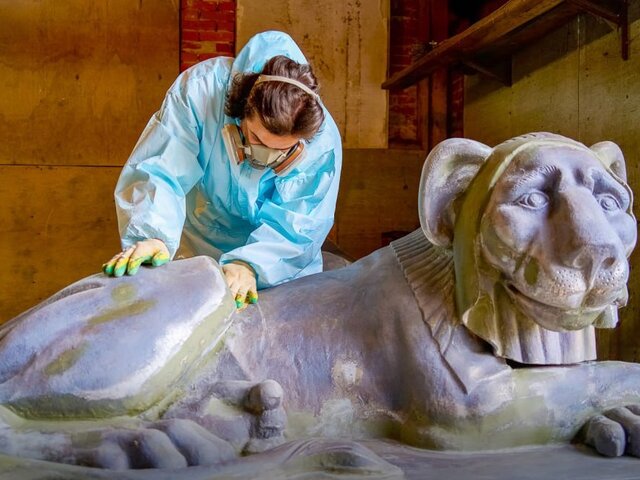 В ближайшее время специалисты начнут грунтовку и окраску, которая станет последним этапом в реставрационных работах. По словам мэра, в 2025-м чугунных львов вернут обратно в усадьбу.