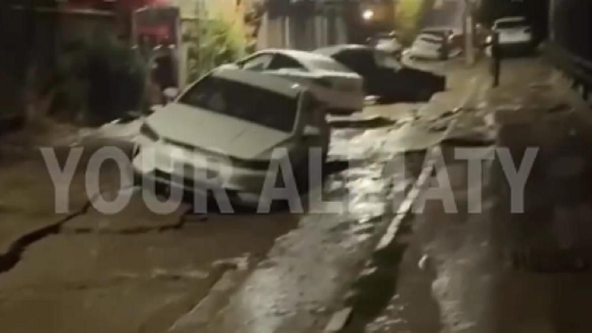Жители Алматы делятся в Сети фотографиями и видео последствий сильного дождя, который прошел в мегаполисе. По словам очевидцев, из-за дождя под землю провалились машины.