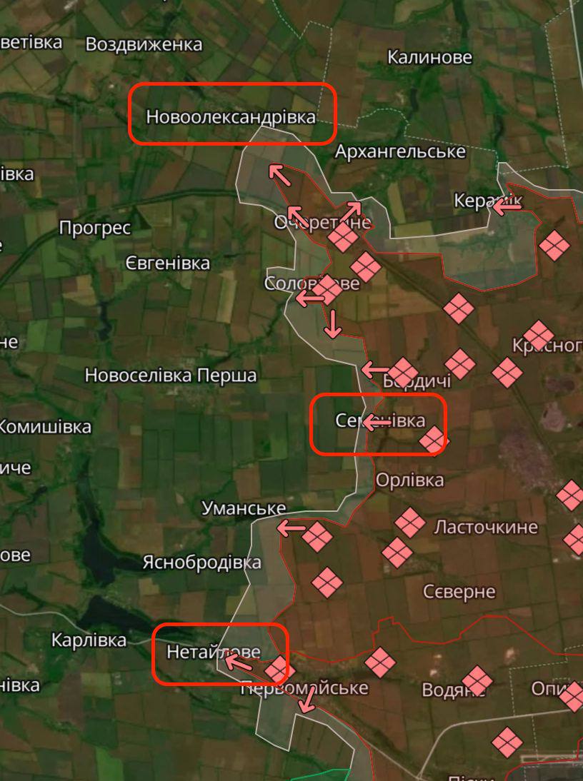 Π’Π°ΠΊΠΆΠ΅ ΡΠΊΡΠ°ΠΈΠ½ΡΠΊΠΈΠΉ ΡΠ΅ΡΡΡΡ ΡΠΎΠΎΠ±ΡΠ°Π΅Ρ, ΡΡΠΎ Π½Π° ΡΡΠΎΠΌ Π½Π°ΠΏΡΠ°Π²Π»Π΅Π½ΠΈΠΈ ΡΠΎΡΡΠΈΡΠ½Π΅ ΠΏΡΠΎΠ΄Π²ΠΈΠ½ΡΠ»Π°ΡΡ Π·Π°ΠΏΠ°Π΄Π½Π΅Π΅ ΠΡΠ΅ΡΠ΅ΡΠΈΠ½ΠΎ β Π² ΡΡΠΎΡΠΎΠ½Ρ ΠΠΎΠ²ΠΎΠ°Π»Π΅ΠΊΡΠ°Π½Π΄ΡΠΎΠ²ΠΊΠΈ. Π ΡΠ°ΠΊΠΆΠ΅ ΡΠΆΠ½Π΅Π΅, Π² ΡΠ΅Π»Π΅ ΠΠ΅ΡΠ°ΠΉΠ»ΠΎΠ²ΠΎ.
