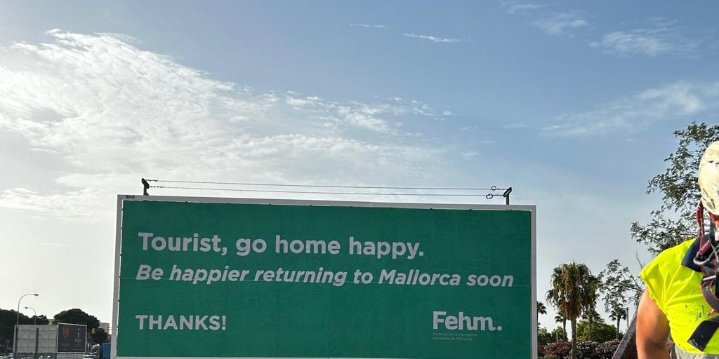 Mallorca ha amanecido este lunes con un mensaje rotundo para quienes llegan por aire, tierra o mar: «Tourist, thanks for visiting». En total, 20 vallas distribuidas por la isla en varios idiomas para decir al turista que, pese al ruido, aquí sigue siendo bienvenido.