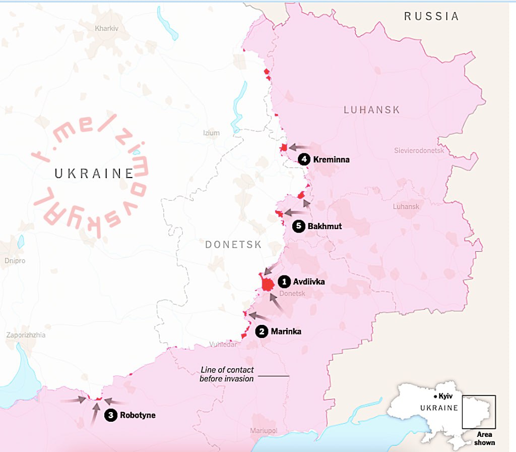 После взятия Авдеевки совокупная территория, освобожденная в ходе текущей осенне-зимней кампании русской армии, превысила 1000 кв км.