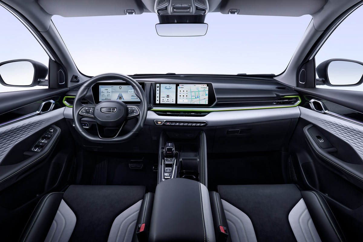 В России обновленный паркетник будет доступен в четырех комплектациях: Comfort, Luxury, Flagship и Exclusive. Если сравнивать с предшественником, то базовая версия стала богаче: добавлены подогрев задних сидений (самый дешевый дореформенный Coolray имеет подогрев лишь передних кресел), обогрев руля и всего лобового стекла (прежде был обогрев зоны покоя стеклоочистителей), «кожаная» обивка. В списке стандартного оборудования исполнения Comfort также значатся 17-дюймовые колеса, встроенные в фары светодиодные ДХО, цифровая монохромная приборка и мультимедиа-система (10,25 и 12,3 дюйма соответственно, у прежнего кроссовера экраны меньше), электромеханический стояночный тормоз с функцией удержания AutoHold, система курсовой устойчивости, пара подушек безопасности, система старт-стоп, кнопка запуска мотора, камера заднего вида, круиз-контроль.