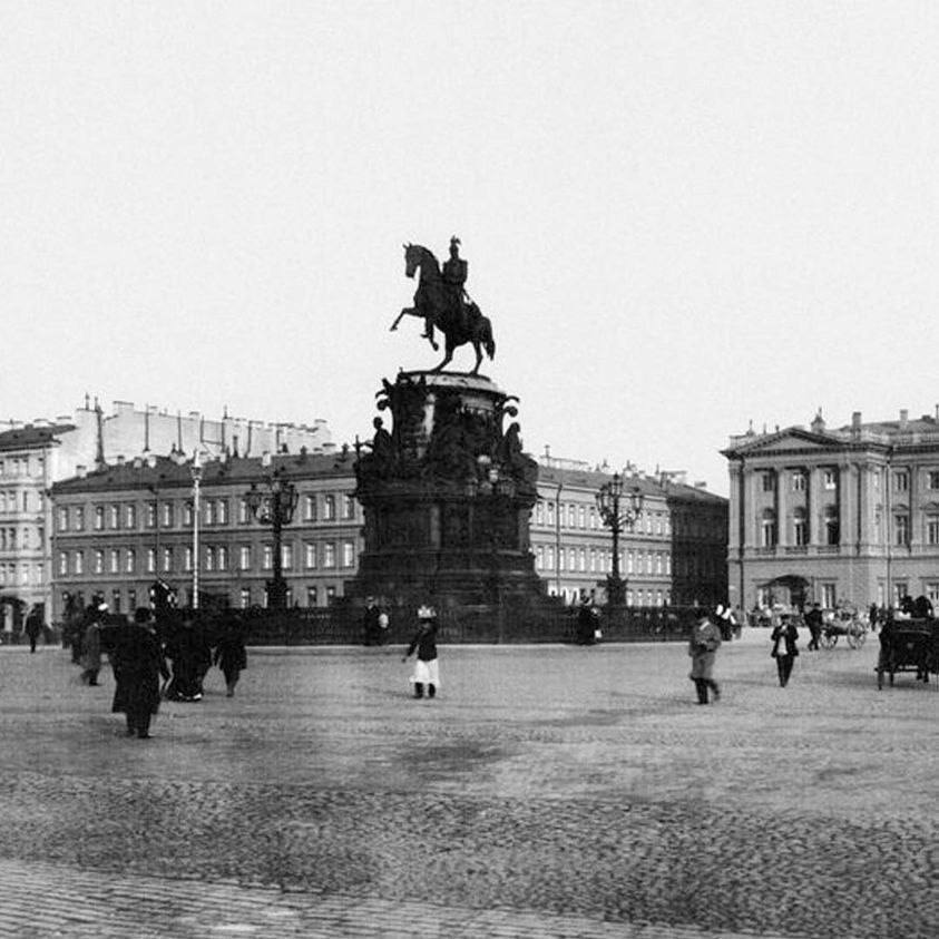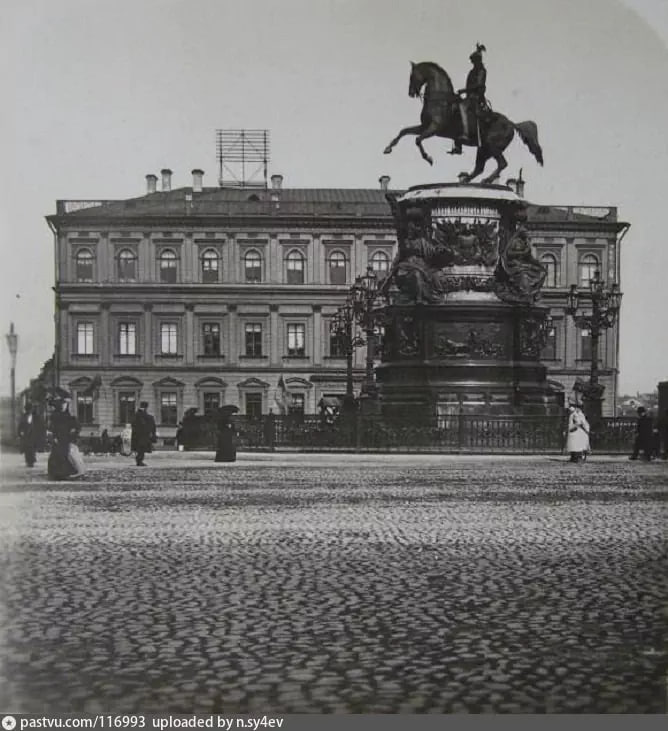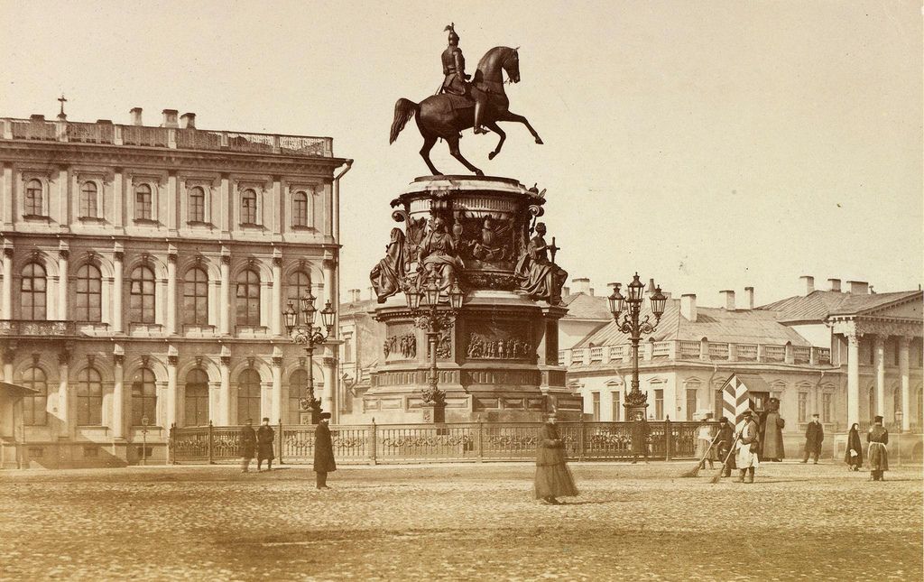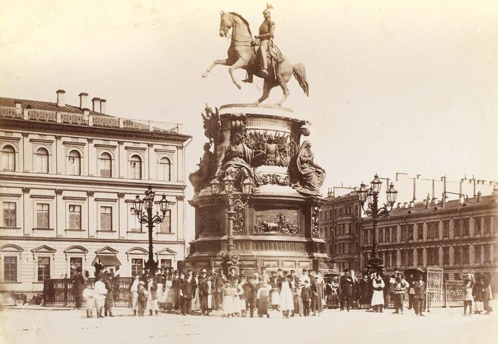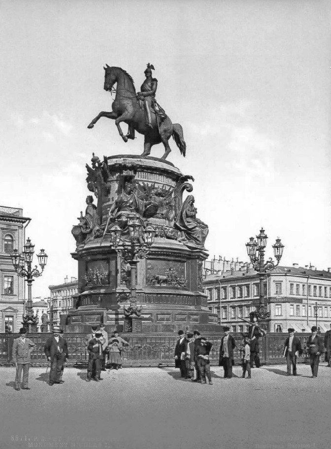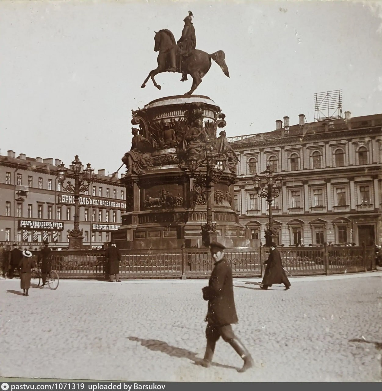 Кстати, памятник Николаю вызывал опасения у его сына, Александра II. Самодержцу казалось, что лошадь не устроит на тонких ногах, и вся скульптура обрушится. Чтобы успокоить императора, Петр Клодт заявил, что готов лечь под ноги бронзовой лошади, настолько он уверен в ее устойчивости.Памятник Николаю I на старых фотографиях